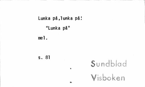 //// Lunka på,lunka på I //// "Lunka på" mel. //// s. 81 //// Sundblad Visboken //// at- ////