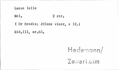 //// Lusse lelle //// Mel. 2 str. //// ( Ur Brodin: JUlens visor, s 12.) Sid.111, nr.65. //// H ederna nn/ Zeivert.olm ////