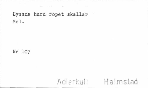 //// Lyssna huru ropet skallar Mel. //// Nr 107 //// Adlerkul! Halmstad ////