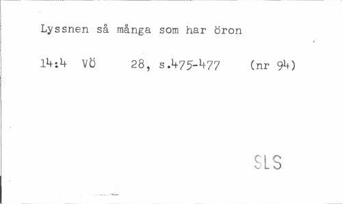 //// Lyssnen så många som har öron Ikib VÖ 28, sA75-I+77 (nr 9M //// SLS ////
