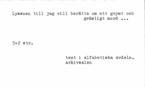 //// Lyssnen till jag vill berätta om ett grymt och //// gräsligt mord ... //// 5+2 str. //// text i alfabetiska avdeln. arkivsalen ////