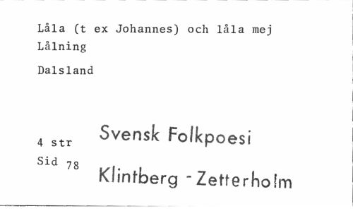 //// Låla (t ex Johannes) och låla mej Lålning //// Dalsland //// 4 str Svensk Folkpoesi //// Sid 7g //// Klinfberg -Zetterhohn ////