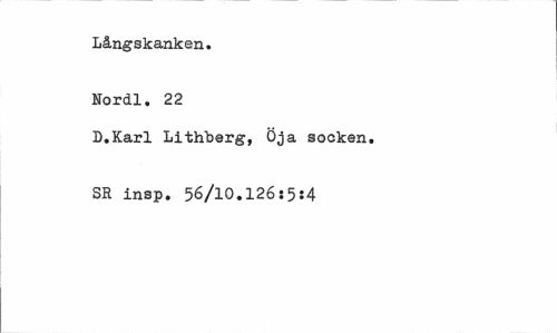 //// Långskanken. Nordl. 22 //// D.Karl Lith"berg, Öja socken. SR insp. 56/10.126:5:4 ////