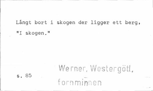 //// Långt bort i skogen der ligger ett berg, "I skogen." //// Werner, Westergöf!, //// s. 85 //// fornminnen ////