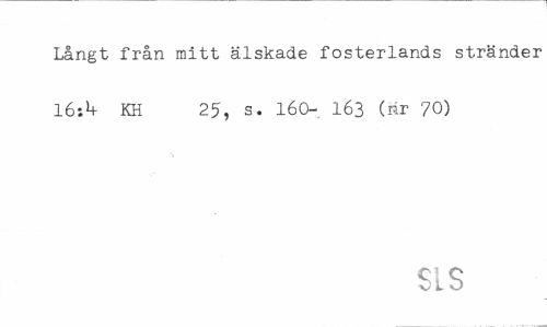 //// Långt från mitt älskade fosterlands stränder 16-A KH 25, S. 160- 163 (nr 70) //// SLS ////