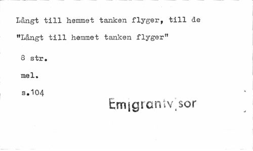//// Långt till hemmet tanken flyger, till de "Långt till hemmet tanken flyger" //// 8 str. mel. b.104 //// Emigrctnivsor ////