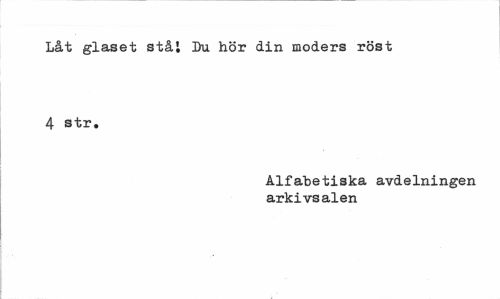 //// Låt glaset stål Du hör din moders röst 4 str. //// Alfabetiska avdelningen arkivsalen ////