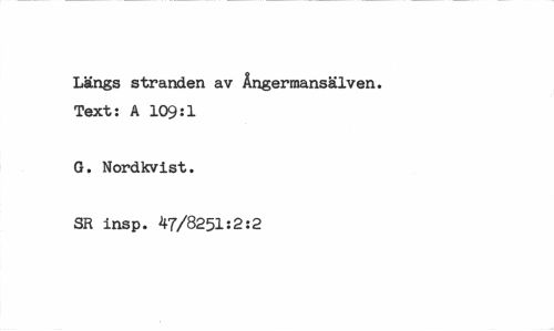 //// Längs stranden av Ångermansälven. Text: A 109:1 //// G. Nordkvist. //// SR insp. 47/8251:2:2 ////