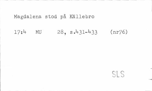 //// Magdalena stod på Kallebro //// 17:^ MU 28, s.^31-^33 (nr76) //// SLS ////