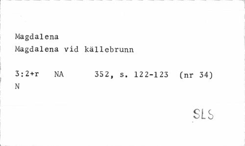 //// Magdalena //// Magdalena vid källebrunn //// 3:2+r NA 352, s. 122-123 (nr 34) //// N //// SLS ////