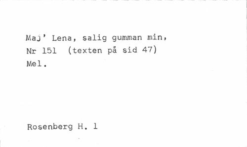 //// Maj' Lena, salig gumman min, Nr 151 (texten på sid 47) Mel. //// Rosenberg H. 1 ////