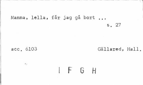//// Mamma, lella, får jag gå bort ... //// s. 27 //// acc. 6103 Gällared, Hall. //// I F C H ////