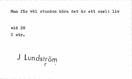 //// Man får väl stundom höra det är ett uselt liv //// sid 28 2 str. //// J Lundström //// r ////