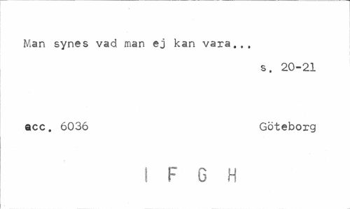 //// Man synes vad man ej kan vara... //// s. 20-21 //// acc. 6036 Göteborg //// I F 6 H ////