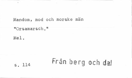 //// Mandom, mod och morske män //// "Orsamarsch." //// Mel. //// s. 114 Frå" berg och dal ////