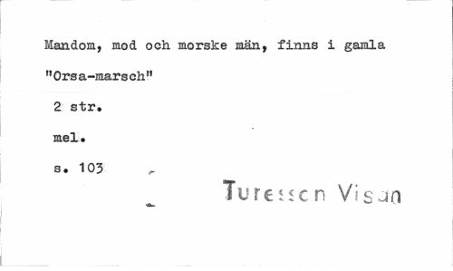 //// Mandom, mod och morske män, finns i gamla "Orsa-marsch" 2 str. mel. s. 103 //// Turcsjcn Visjn ////