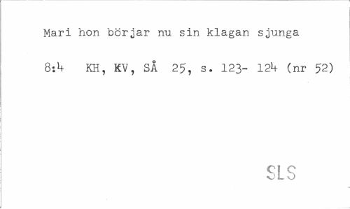 //// Mari hon börjar nu sin klagan sjunga 8ik KH, KV, SÅ 25, s. 123- 12*t (nr 52) //// SLS ////
