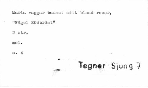 //// Maria vaggar barnet sitt bland rosor, "Fågel Rödbröst" 2 str. mel. s. 4 //// Tegnér Sjung 7 ////
