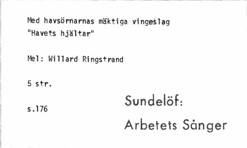 //// Med havsörnarnas mäktiga vingeslag "Havets hjältar" //// Mel: Willard Ringstrand //// 5 str. //// Sundelöf: //// s.176 //// Arbetets Sånger ////