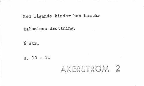 //// Med lågande kinder hon hastar Balsalens drottning. //// 6 str, //// s. 10 - 11 //// A [o>D CTDri/d 9 ////