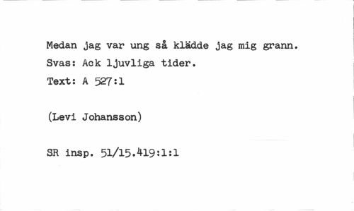 //// Medan jag var ung så klädde jag mig grann. Svas: Ack ljuvliga tider. Text: A 527:1 //// (Levi Johansson) //// SR insp. 51/15.419:1:1 ////