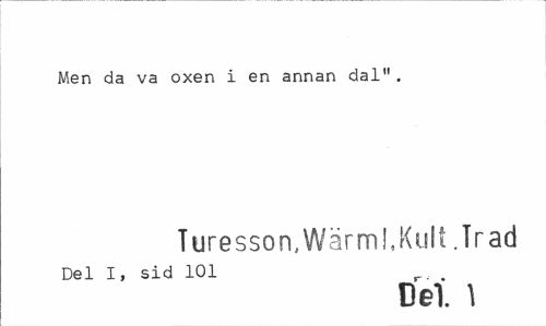 //// Men da va oxen i en annan dal". //// Turesson. Wärml,Kult .Trad //// Del I, sid 101 //// Del. 1 ////