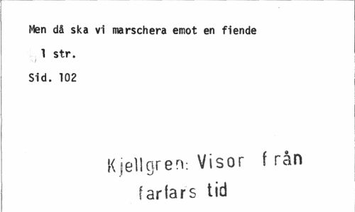 //// Men då ska vi marschera emot en fiende 1 str. //// i //// Sid. 102 //// Kjellgren: Visor f rån farfars tid ////