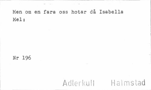 //// Men om en fara oss hotar då Isabella Mel: //// Nr 196 //// Adlerkull Halmstad ////