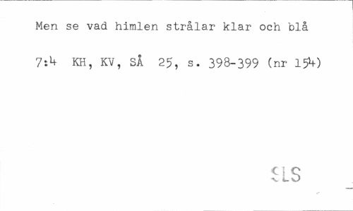 //// Men se vad himlen strålar klar och blå KH, KV, SÅ 25, s. 398-399 (nr 15*0 //// iLS ////
