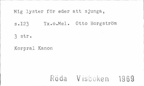 //// Mig lyster för eder att sjunga, S.I23 Tx.o.Mel. Otto Borgström 3 str. //// Korpral Kanon //// Röda Visboken 1389 ////