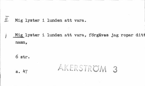 //// IL Mig lyster i lunden att vara. //// I Mig lyster i lunden att vara, förgäves jag ropar dit' namn, //// 6 str. //// / £.'•' C n C T o 'n A 4 O s. 4? 4 i v t_ k ö i I i U/V i O ////