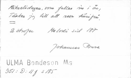 //// SrT/ytt, ^éL&jt* / ^ //// /aä/é&t. a^y wé?» //// ULMA Bondeson Ms Sf/: £>. //* S/Fr ////