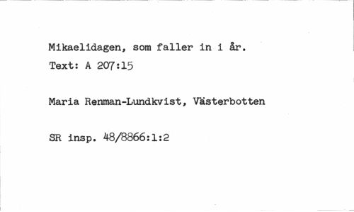 //// Mikaelidagen, som faller in i år. Text: A 207:15 //// Maria Renman-Lundkvist, Västerbotten SR insp. 48/8866:1:2 ////