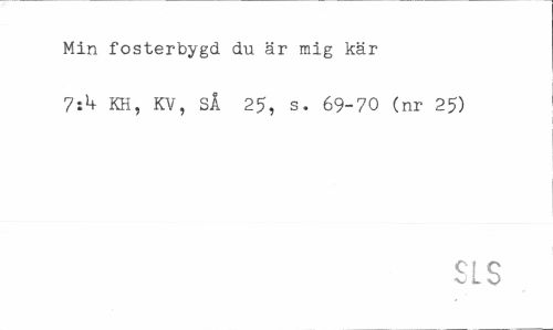 //// Min fosterbygd du är mig kär //// 7:^ KH, KV, SÅ 25, s. 69-70 (nr 25) //// SLS ////
