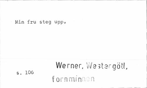 //// Min fru steg upp, //// Werner, Westargötl, //// s. 106 //// fornminnen ////