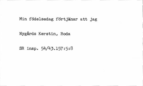 //// Min födelsedag förtjänar att jag Nygårds Kerstin, Boda SR insp. 54/^.157:5:8 ////