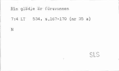 //// Min glädje är försvunnen //// 7:4 LT 534, s. 167-170 (nr 35 a) //// N //// SLS ////