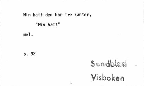 //// Min hatt den har tre kanter, "Min hatt" //// mel. s. 92 //// Svndfel&d - //// Visboken ////