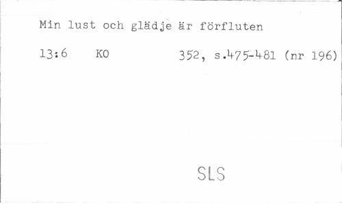 //// Min lust och glädje är förfluten //// 13:6 KO 352, s.*+75-^8l (nr 196) //// SLS ////