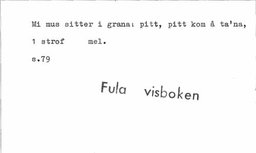 //// Mi mus sitter i granai pitt, pitt kom å ta'na, //// 1 strof mel. //// s.79 //// visboken ////