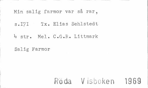 //// Min salig farmor var så rar, s.I7I Tx. Elias Sehlstedt k str. Mel, C.G.R. Littmark Salig Farmor //// Röda Visboken 1969 ////