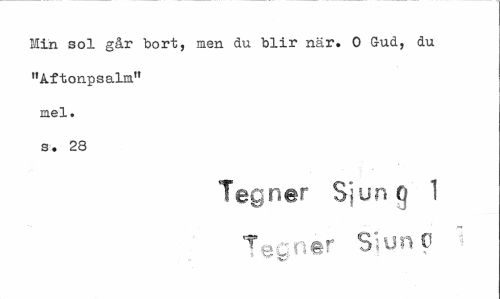 //// Min sol går bort, men du blir när. 0 Gud, du "Aftonpsalm" mel. s. 28 //// Teg ner Sjung 1 //// Tegnér Si un c ////