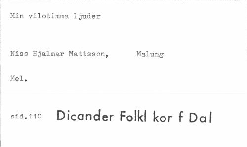 //// Min vilotimma ljuder //// Niss Hjalmar Mattsson, Malung //// Mel. //// sid. 110 Dicander Folkl kor f Dal ////