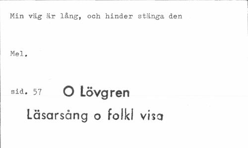 //// Min väg är lång, och hinder stänga den Mel. //// sid. 57 O Lövgren //// Läsarsång o folkl visa ////