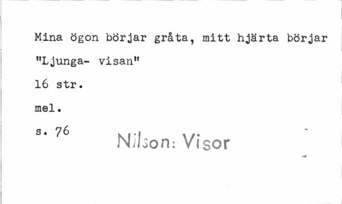 //// Mina ögon börjar gråta, mitt hjärta börjar "Ljunga- visan" 16 str. mel. //// s" 76 Nilson: Visor ////