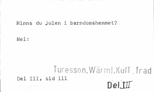 //// Minns du julen i barndomshemmet? Mel: //// Turesson,Wärml,KutT .Träd //// Del III, sid 111 //// Deiur ////