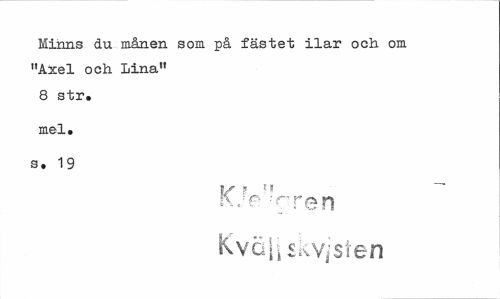 //// Minns du månen som på fästet ilar och. om "Axel och Lina" 8 str. //// mel. //// s. 19 //// i\jf- rren Kvoi|£kvjsten ////