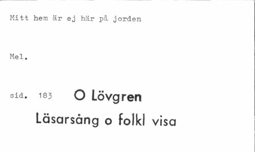 //// Mitt hem är ej här på jorden Mel. //// sid. 183 O Lövgren //// Läsarsång o folkl visa ////