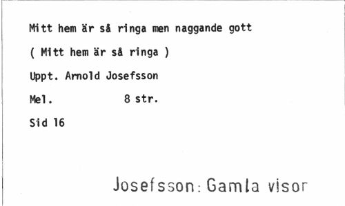 //// Mitt hem är så ringa men naggande gott ( Mitt hem är så ringa ) Uppt. Arnold Josefsson Mel. 8 str. //// Sid 16 //// Josefsson: Gamla visor ////