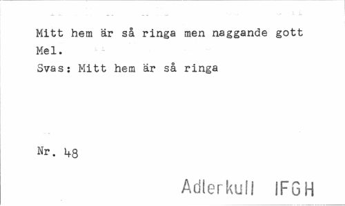 //// Mitt hem är så ringa men naggande gott Mel. //// Svas: Mitt hem är så ringa Nr. U8 //// Adlerkul! IFGH ////
